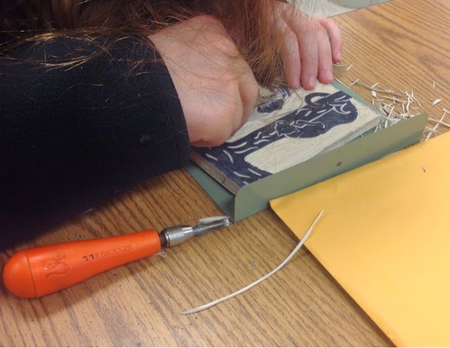 With all of the snow we had this quarter, I ended up having to break their drawings into smaller shorter projects. I really like to have thier drawing and color theory projects be larger, but we were at the mercy of the weather this quarter. Our first venture into countour line occured with hand drawings and color scheme collages.